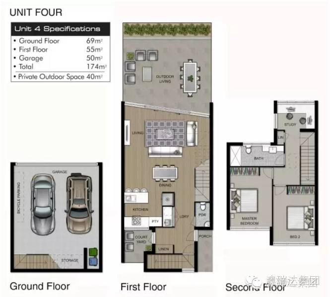 项目介绍该项目为10套全新的三层豪华别墅,其别君匠心的设计风格,带来了焕然一新的感觉。“她们”位于墨尔本市著名的富人区Toorak,且拥有墨尔本最好的私立中学。周边尽是清静幽雅的公园绿地以及林林总总的餐馆和咖啡馆。如此寂静谧清幽之处距离墨尔本市中心仅5公里,在TOORAK买房子就已经确保了房子的优越性,包括奢华的印象和高人一等的待遇。Toorak是财富和地位的代名词,是澳洲最著名地区,有名人,蓝筹街道,豪华古宅。TOORAK最引以为傲的生活品质方面就是教育。Loreto, Toorak College, St Catherine’s and St Kevin’s等著名学校都位于此。尊贵典雅 雍容奢华“流畅时尚的外观以及合理舒适的布局将为您带来独一无二的现代感。大方舒适的客厅紧连着由白色作为主色调的厨房和餐厅,尽显时尚与高贵。内部设施为高档厨卫品牌专属设计,全欧洲橡木地板。为您在方便实用的同时带来尊贵奢华的享受。在享受都市生活带来的一切便利的同时,还能确保享有静谧生活隐私不被打搅。户型介绍该项目多为4房、3房的户型参考户型Unit 4 (4房3卫2车库)